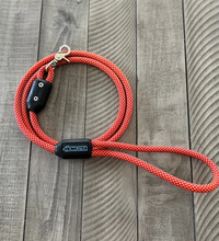 5' leash hand made in Missiouri, US. High quality climbing rope for daily and active dogs, with lobster claw for easy connection to the harness.