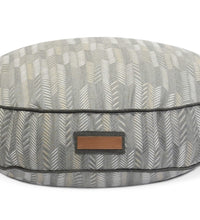 Have a dog who’s a freestyle sleeper? On their back one minute, belly the next, curled into a donut a minute later? Our round bed takes on all comers. Plush and responsive, the Round bed refuses to clump or flatten. It's over-stuffed with a proprietary fill made from recycled plastic water bottles that gives just the right amount to provide support and bounces back use after use. Tailored in beautiful gray Sunbrella fabric with a playful hand-drawn chevron pattern, this bed is soft to the touch, durable, resists moisture, and is washable. There is simply no better fabric choice for a pet bed. Each piece is made by hand in the USA and begins manufacturing the day you place your order. Thoughtfully designed with your dog and your home in mind, our round bed performs as good as it looks. We recommend measuring your sleeping pet to find the perfect bed size. Pets who curl up to sleep can fit on a smaller bed, while those who stretch out need a larger bed. To determine the ideal bed length, measure your pet in their typical sleeping position, then add 6-10” for the final bed size. When in doubt, we suggest ordering the size up. Please double check that you have chosen the correct size before placing your order. Small: 24 in. x 24 in. x 8 in. high (dogs less than 30 lbs) Medium: 31 in. x 31 in. x 8 in. high (dogs 30-60 lbs) Large: 41 in. x 41 in. x 10 in. high (dogs 60-90 lbs) X-Large: 48 in. x 48 in. x 11 in. high (dogs over 90 lbs)